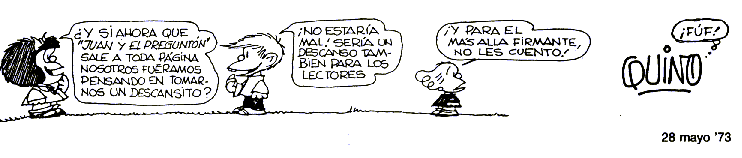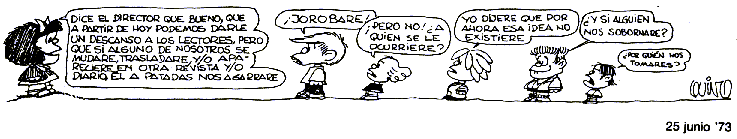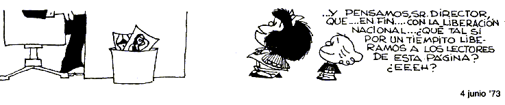 Hola, en este artículo me gustaría adjuntarles varias tiras de la despedida de Mafalda, que me parecieron bastante emotivas y decidí compartirlas con ustedes.